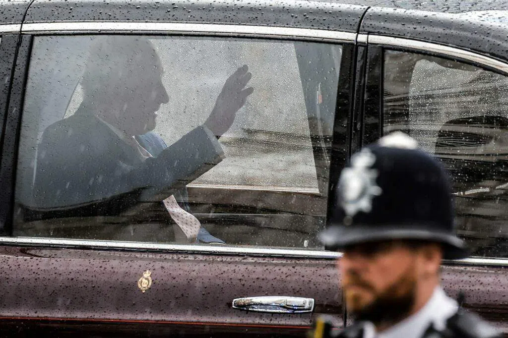 加冕仪式结束后,查尔斯和卡米拉从威斯敏斯特教堂乘坐“黄金马车”回到白金汉宫。一个小时后,两人在白金汉宫阳台向群众挥手致意。随行的王室成员不见哈里和安德鲁身影。