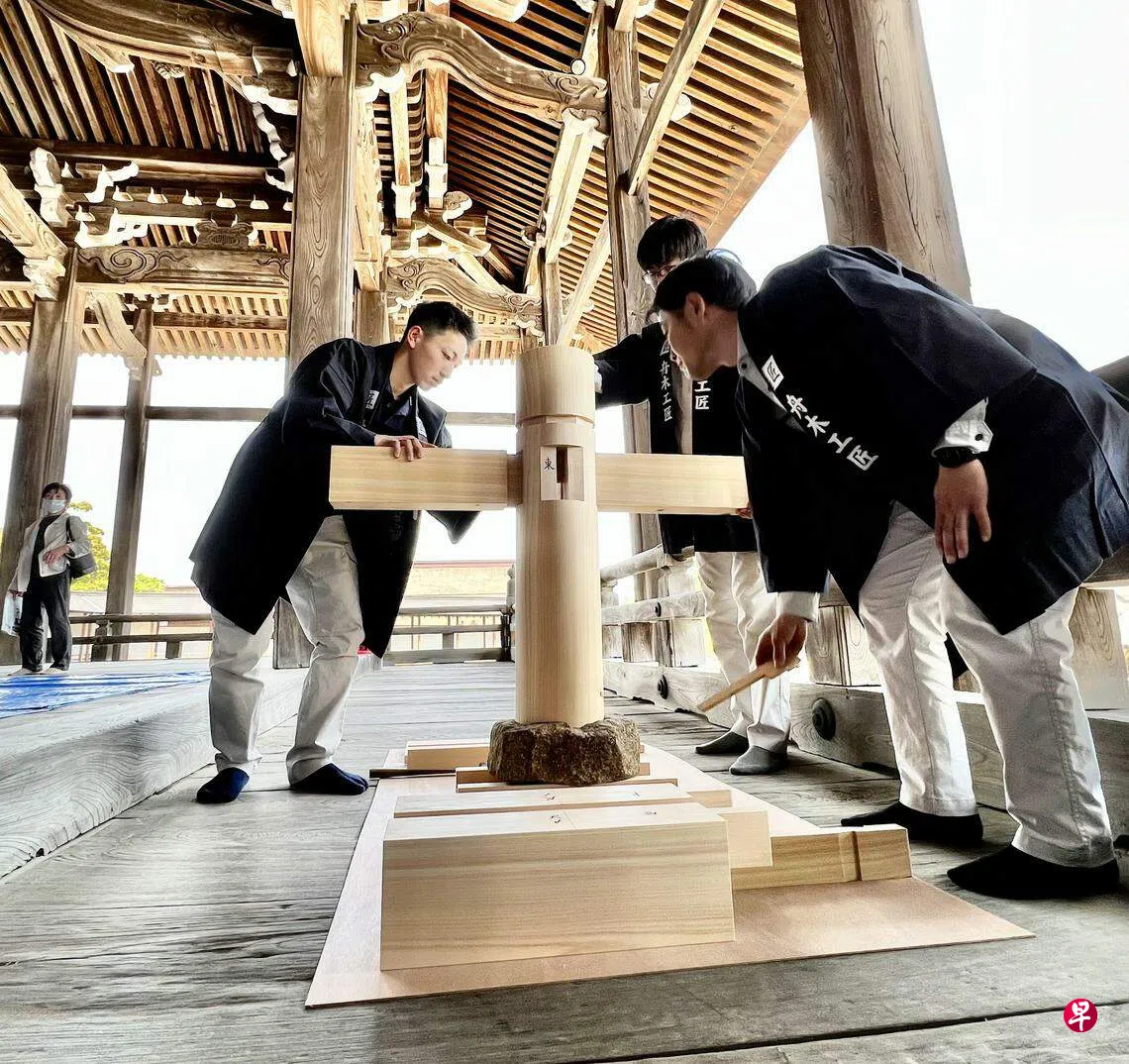 舟木告诉《联合早报》,木工是日本传统建筑的代表技术,最大特点是结构上不使用钉子,而是由切割不均匀的木料组装而成。因此,在加工过程要特别细心,且要凭经验选择木材。