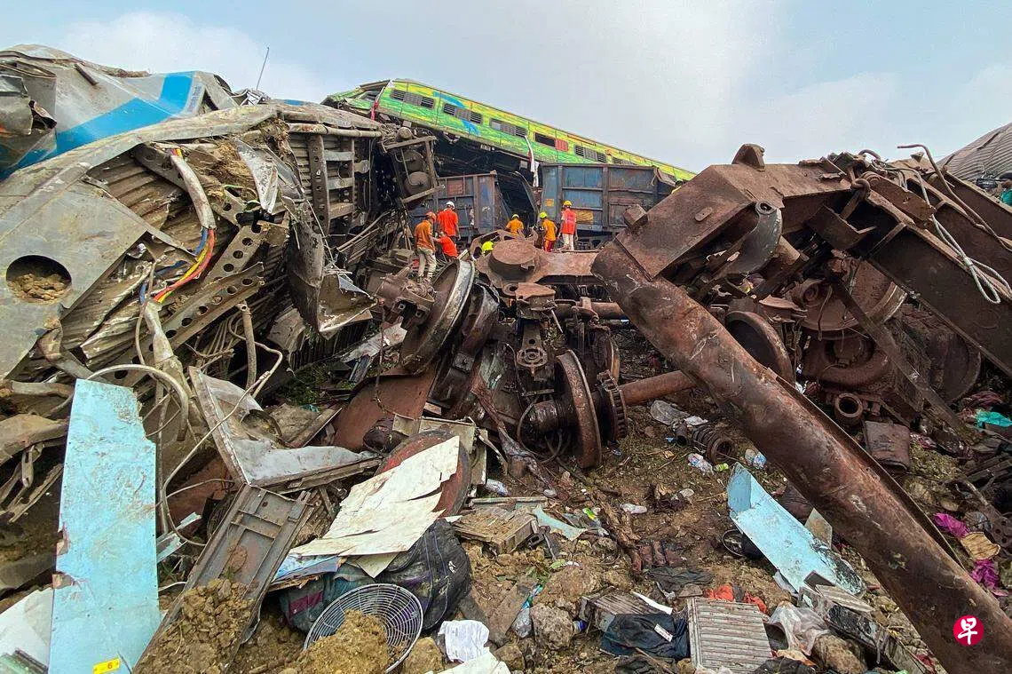 惨祸发生在印度东部的奥迪沙邦(Odisha)。当地有官员说,星期五(6月2日)晚上7时左右(新加坡当晚9时30分),一列从加尔各答(Kolkata)开往金奈(Chennai)的客运列车在奥迪沙邦巴拉索尔地区的火车站附近脱轨,10多节车厢散落四处,一些车厢还落在反向轨道上。
