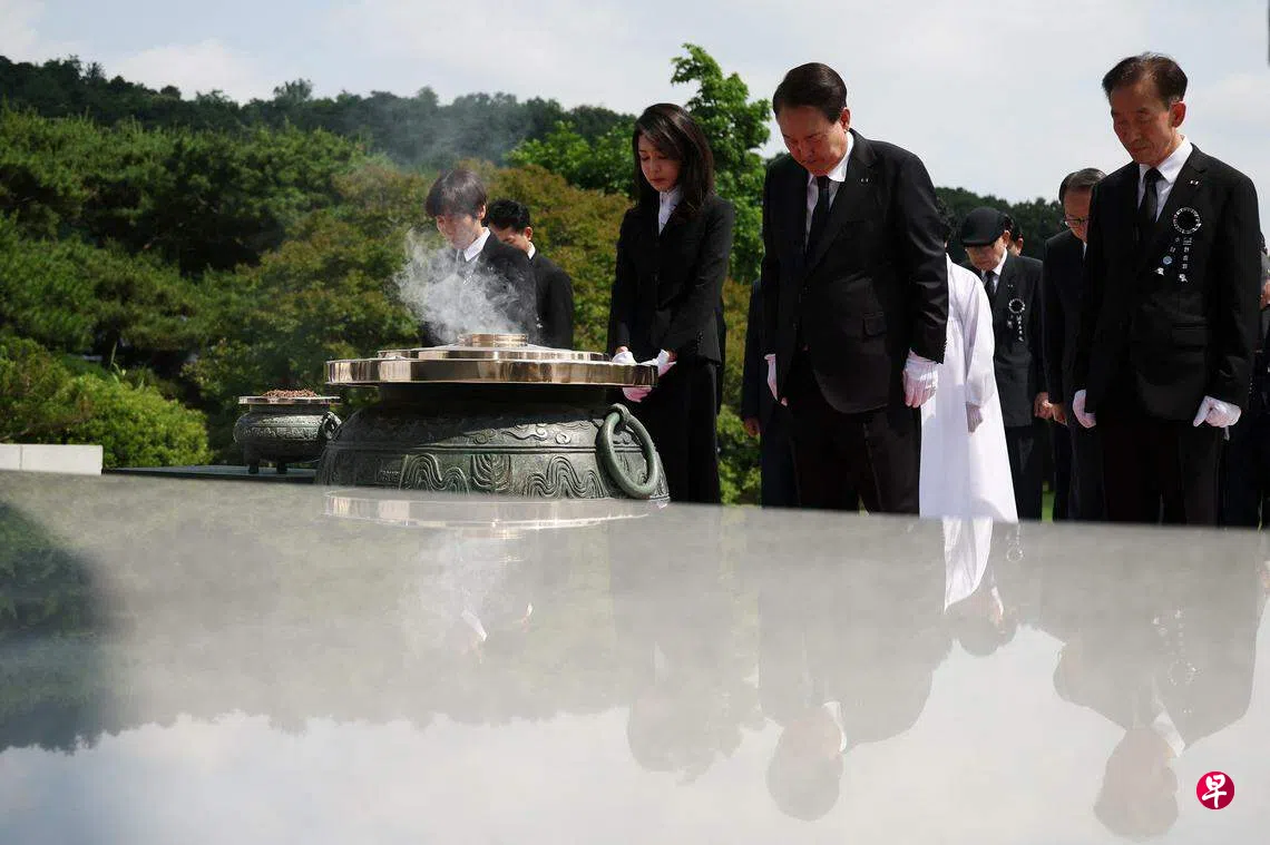 尹锡悦6日上午在国立首尔显忠院举行的追悼仪式上说:“朝鲜正在升级核导能力,并为核武立法。我和美国拜登总统在今年4月发布旨在加强美军核资产延伸威慑执行力的《华盛顿宣言》。”