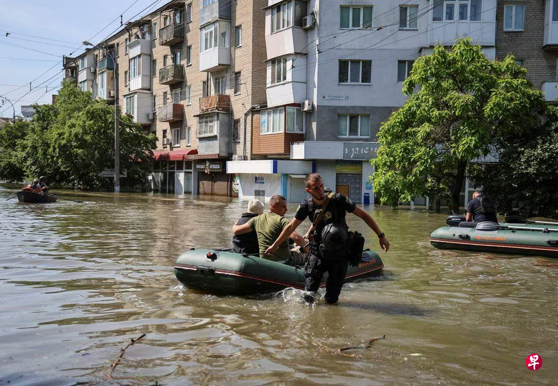(基辅/莫斯科综合电)乌克兰南部港市卡霍夫卡的大水坝星期二(6月6日)遭炸后洪水迸发,下游地区数以千计的居民紧急疏散,数十万人的饮用水供应受影响。联合国说,这是“巨大的人道、经济和生态灾难”。
