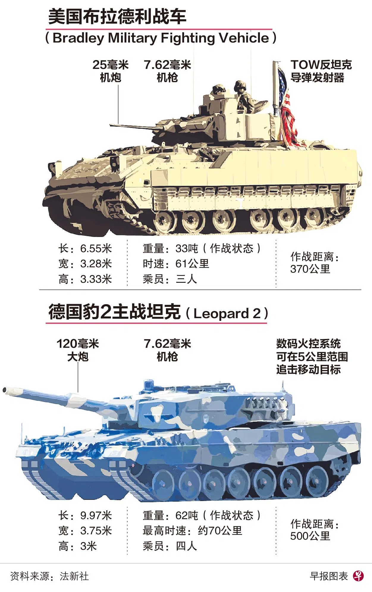 其中,俄国军事博客发出的照片显示,德国豹2主战坦克和美国布拉德利战车向乌克兰南部扎波罗热州的托克马克镇(Tokmak)挺进。网上情报库Osint Defender认为,这些照片看起来可信。
