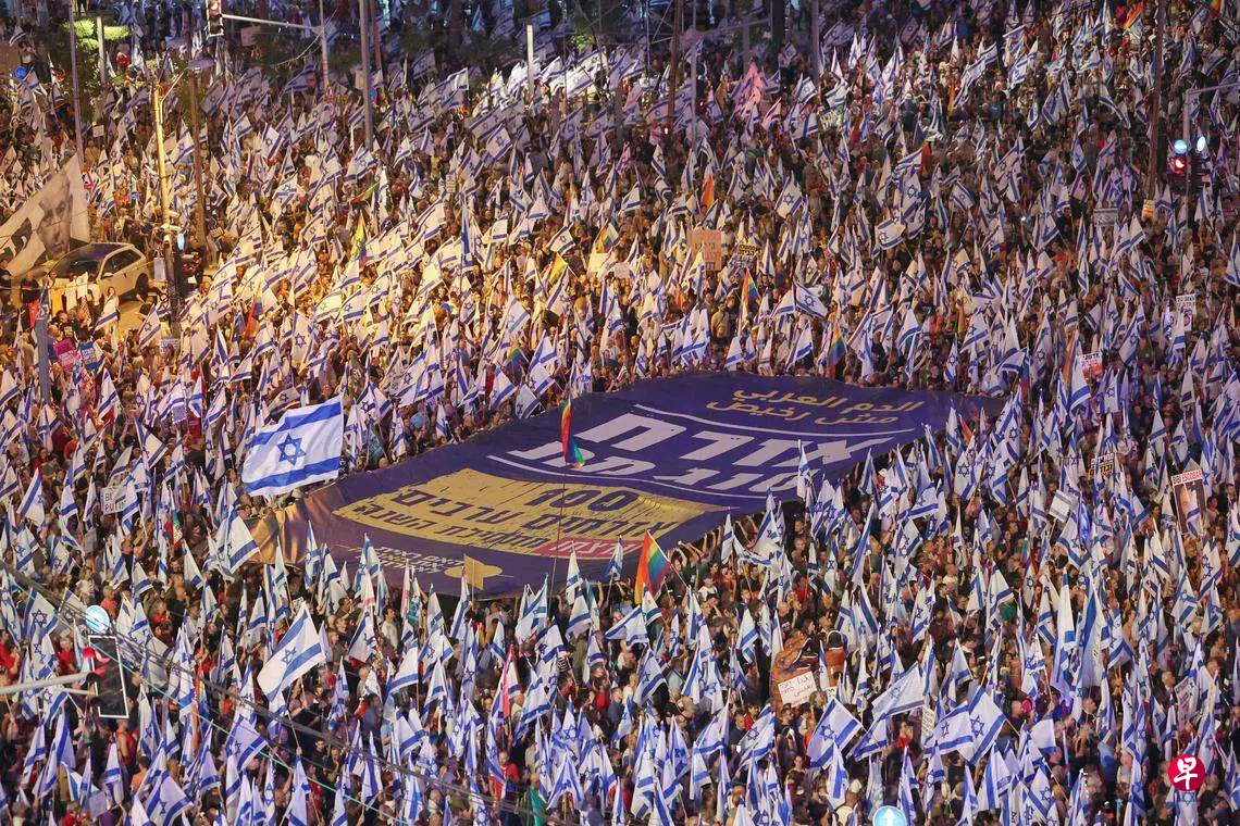 (特拉维夫法新电)以色列民众连续23个周末上街示威,反对总理内坦亚胡政府推出的司法改革计划,并抗议当局罔顾阿拉伯社区日益严重的致命暴力事件。