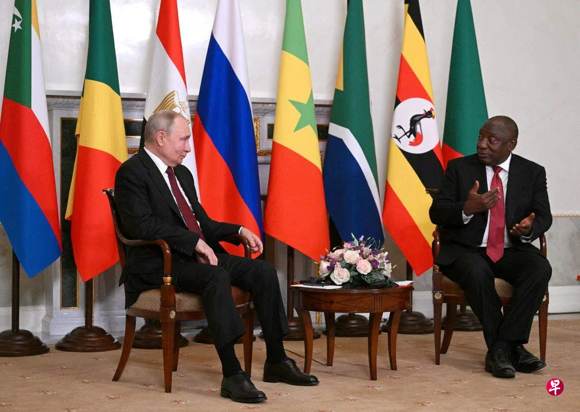 (莫斯科综合电)南非总统拉马福萨星期六(6月17日)当面告诉俄罗斯总统普京,俄乌战争必须停止。普京虽表示有兴趣探讨非洲提出的10点和平建议,但指许多建议受到西方误导,包括采用国际公认的俄乌边界。此前一天,乌克兰总统泽连斯基也对这个和平方案泼冷水,坚持俄罗斯必须先撤军,才可能开始和谈。