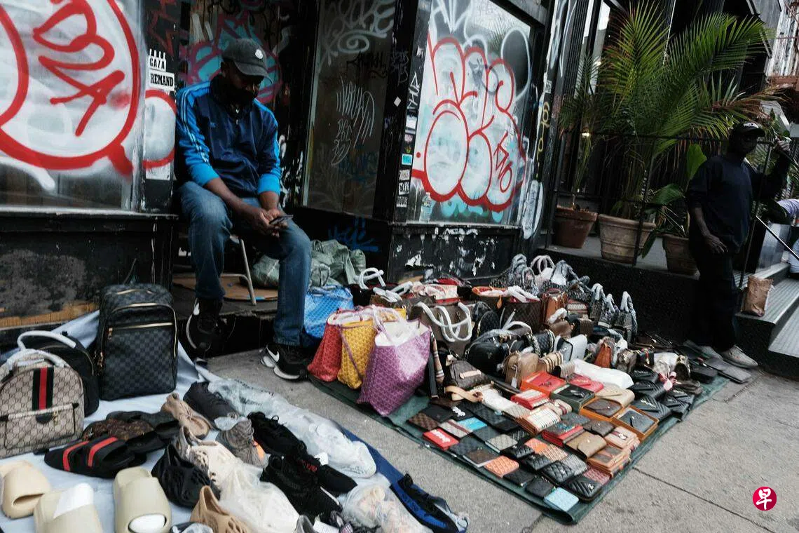美国纽约市曼哈顿出现冒牌货市场。星期四(6月22日)在曼哈顿运河街的人行道上,商贩展示一堆冒牌商品。尽管经常遭到警方的突击搜查,但假货供应商仍在当地建立了一个大市场。美国知识产权和假冒商品办公室的数据显示,国际假冒奢侈品市场的价值估计在4000亿至6000亿美元(约5410亿至8115亿新元)。在庞大利益的驱使之下,难怪许多人甘冒风险卖假货。
