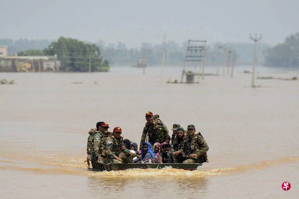 旁遮普邦北部城市贾朗达尔一条河流因水位猛涨,造成附近地区大面积淹水,交通陷入瘫痪,许多居民受困家中。印度政府星期三(7月12日)出动军警人员将受困居民救出。