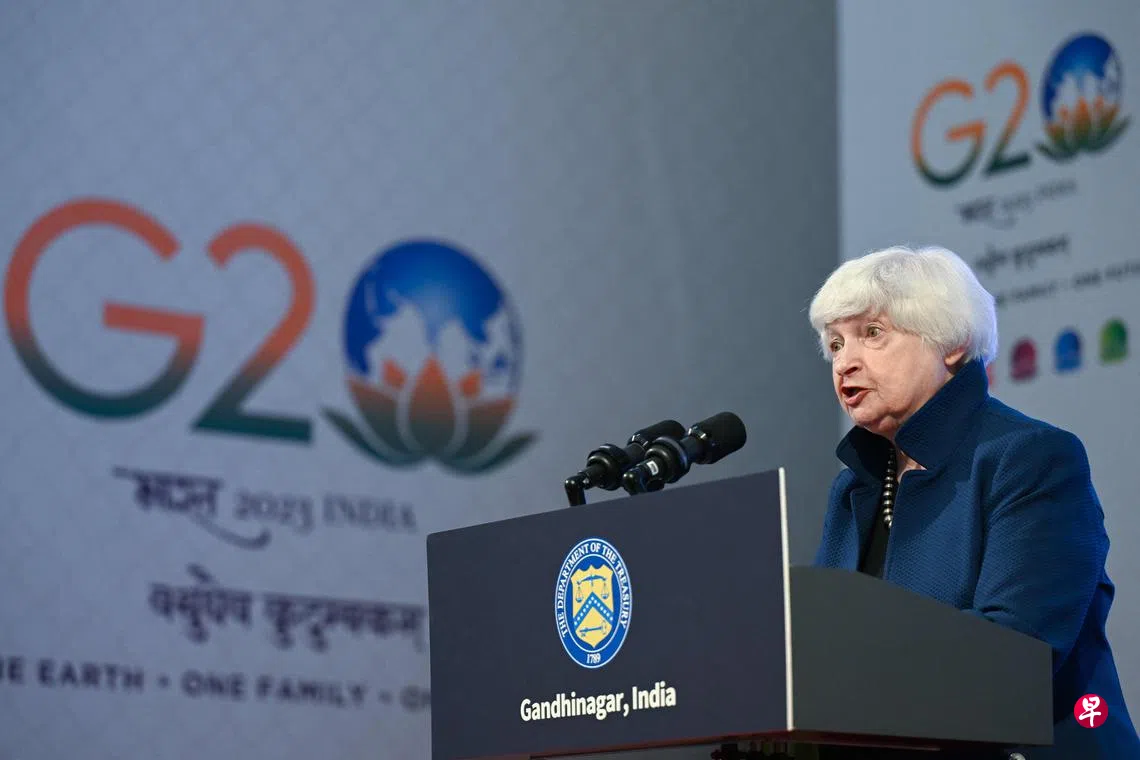 为期两天的二十国集团(G20)财长和央行行长会议星期一(17日)起在印度甘地讷格尔召开。会议前夕,耶伦在记者会上说,她早前访问北京有助于让中美关系更加稳固,并强调在“共同关切的领域合作”是中美作为全球两大经济体的国际义务。