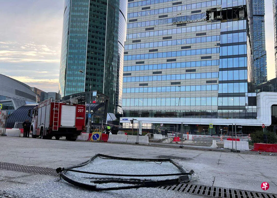 莫斯科市长索比亚宁说,两座办公大楼的外墙受到轻微损坏。现场拍摄的照片显示,两座建筑物的几扇窗户被撞飞,钢筋扭曲受损,文件散落一地。