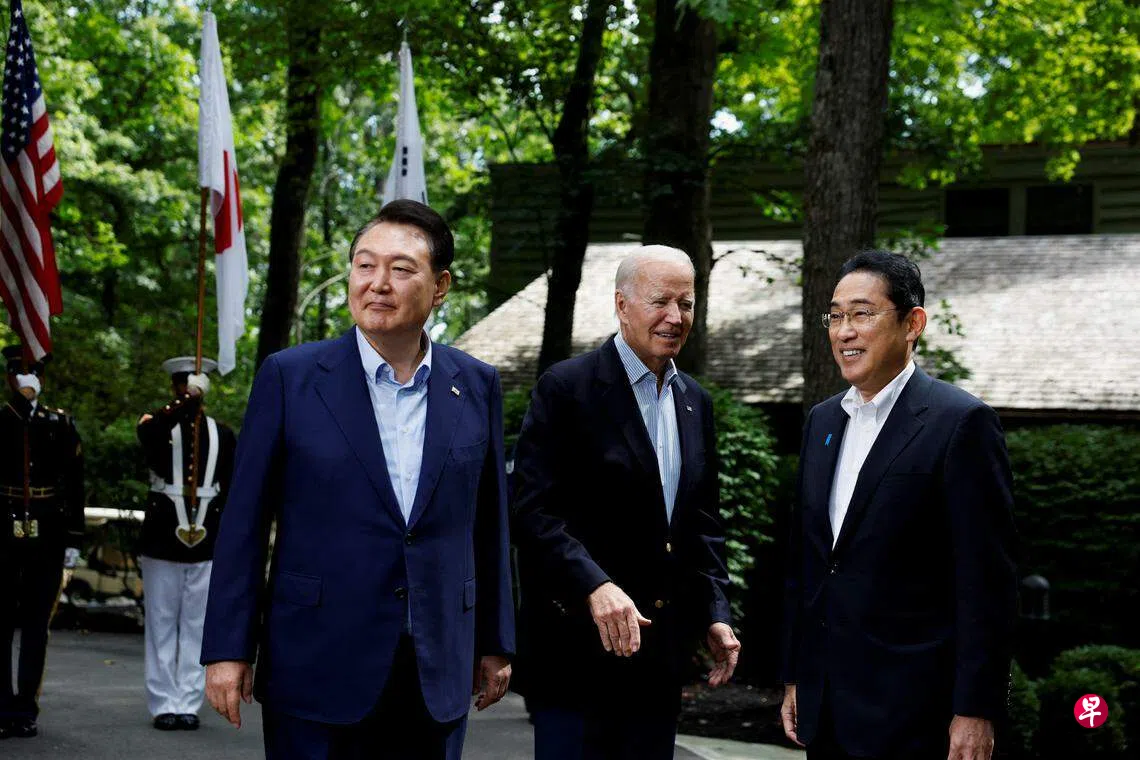 在马里兰州戴维营(Camp David)举行的峰会是三国的首场峰会,在亚太局势吃紧之际,这个峰会令人瞩目,尤其是美日韩之间的团结、如何应对中国挑战、如何遏制朝鲜威胁、如何保护关键商品如半导体的供应链等课题,都是重中之重。分析员指出,以下几个面向值得关注。