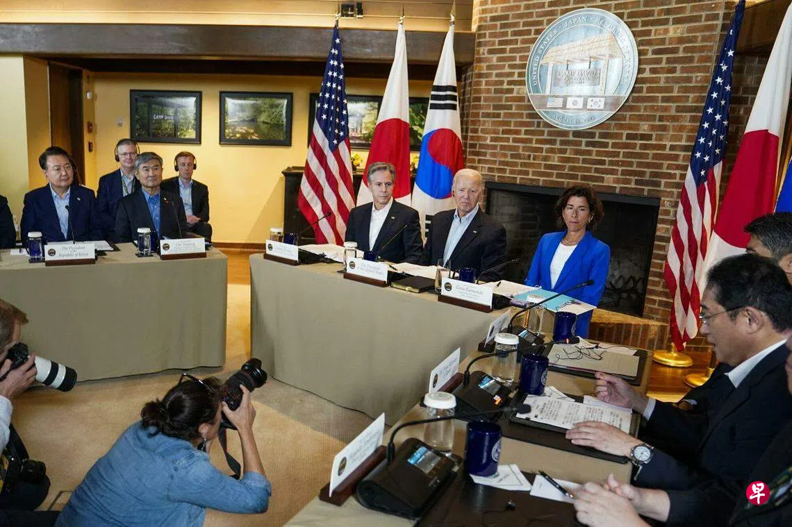 美国总统拜登、日本首相岸田文雄和韩国总统尹锡悦在三方首个首脑峰会上,同意深化三国的军事与经济合作,并在联合声明中强烈谴责中国在南中国海的“危险和侵略行为”,进一步加大对中国施压。