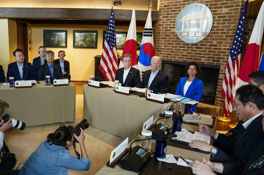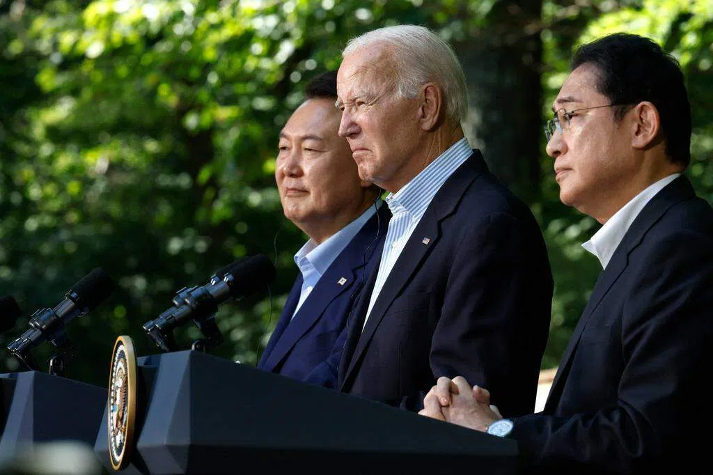 此前,美日韩三国领导人18日举行了戴维营峰会。这是历史上美日韩在国际会议以外的场合专门举行的三国首脑会谈,也是拜登自2021年上任以来首次在戴维营接待外国领导人。