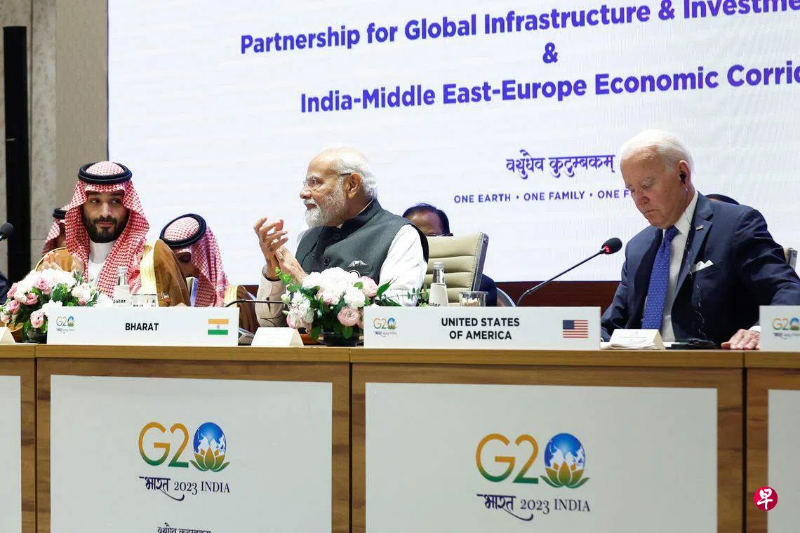 美国、沙特阿拉伯、欧洲联盟、印度、阿拉伯联合酋长国、法国、德国和意大利星期六(9月9日)在新德里举行的二十国集团(G20)峰会场边签署谅解备忘录,承诺合作建设印度—中东—欧洲经济走廊(India-Middle East-Europe Economic Corridor,简称IMEC)。