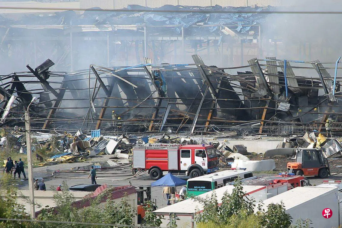 乌兹别克斯坦当局说,这个仓库位于塔什干机场附近,因被闪电击中而爆炸并引发大火。一名17岁青少年不幸遇难,伤者中有138人受轻伤,其余24人伤势较重,须送医救治。