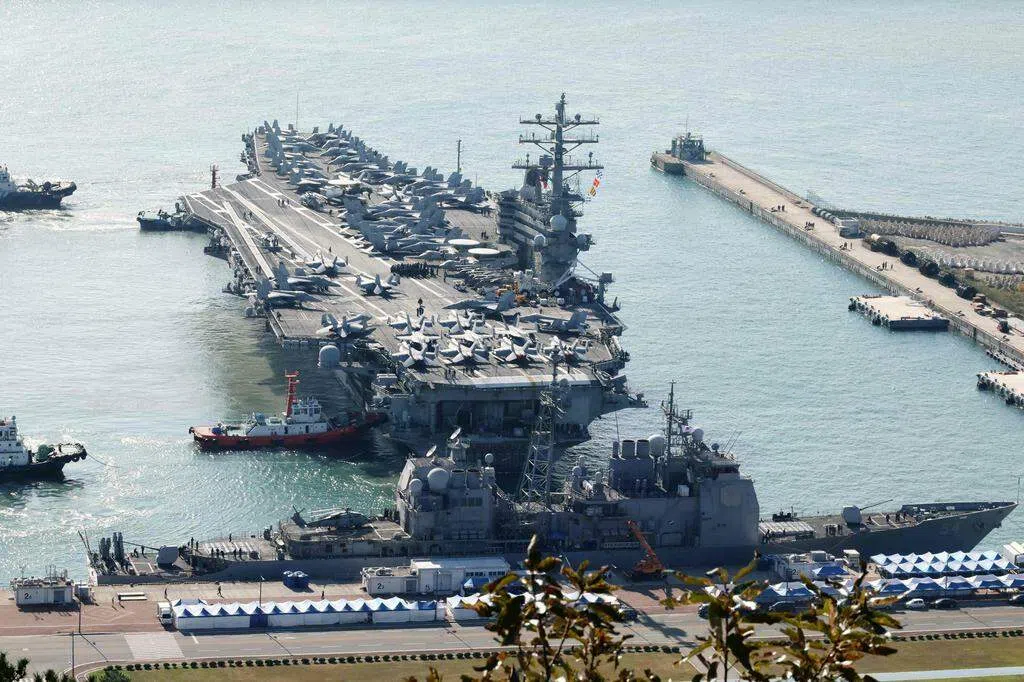 美军里根号核动力航母上星期对韩国进行访问,引起朝鲜的强烈不满。朝方曾在2017年扬言要在包括朝鲜领空外“击落”美国战略轰炸机。