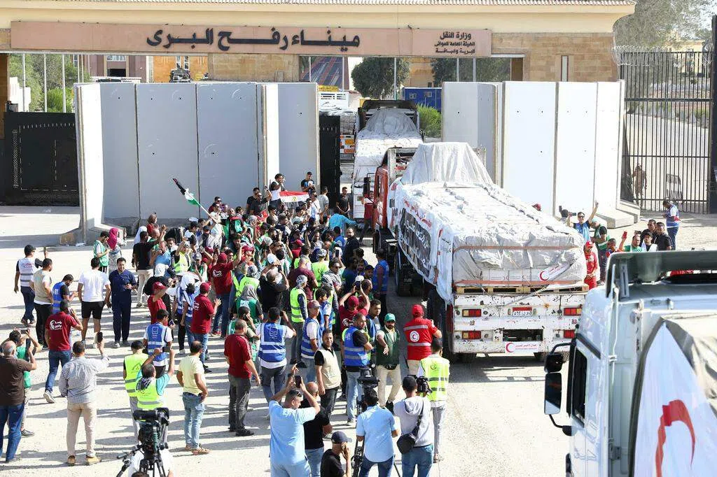 第一批救援卡车在峰会开幕前从埃及进入加沙南部,联合国说当地情况正在恶化,每天需要大约100辆卡车送去救援物资。古特雷斯指出,救援规模必须快速扩大,提供更多援助。