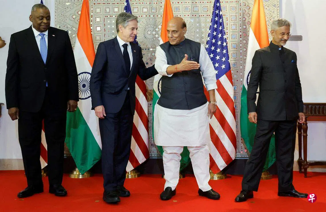 (新德里综合电)美国国务卿布林肯和美国防长奥斯汀星期五(11月10日)同印度外长与防长举行“二加二”会谈,两国会后宣布在关键国防交易方面取得进展,承诺在面对地缘政治挑战之际,扩大美印的战略伙伴关系。