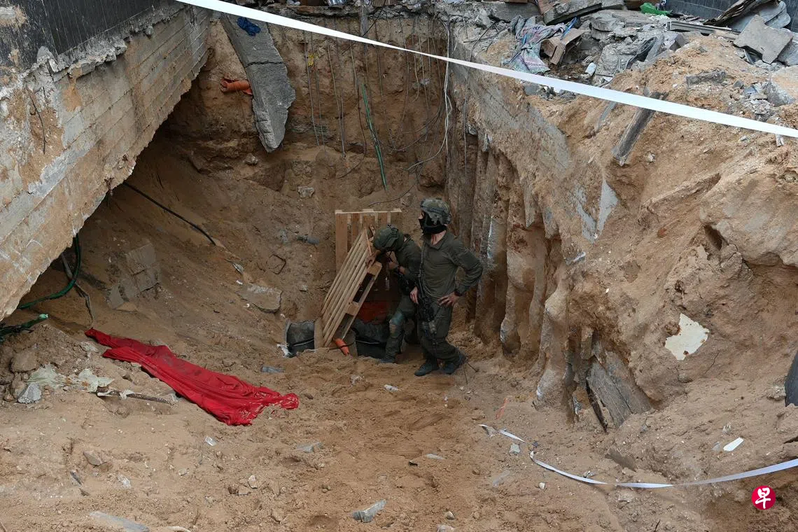(加沙法新电)以色列军方护送记者前往加沙地带的希法医院,向他们展示一个隧道竖井,称这是哈马斯用于军事目的的庞大地下网络的一部分。