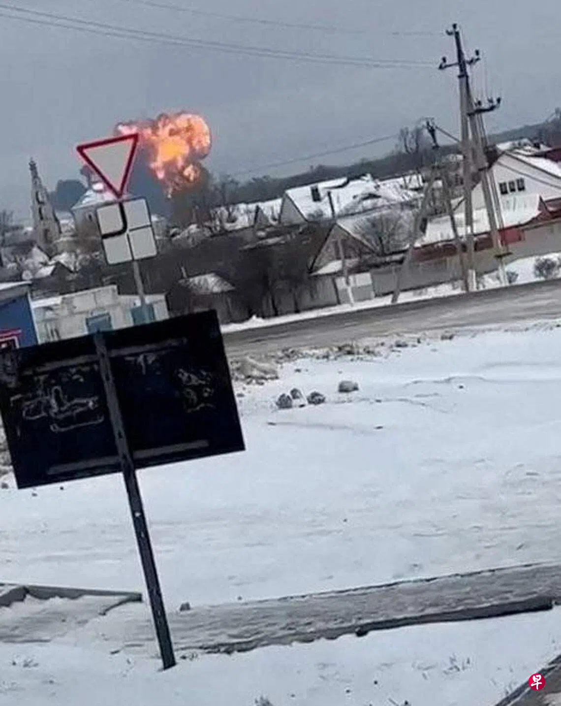 视频画面显示,这架伊尔-76军用运输机星期三(1月24日)上午11时(新加坡时间下午4时)在别尔哥罗德州亚布洛诺沃村(Yablonovo )附近坠毁,引发巨型火球并爆炸。