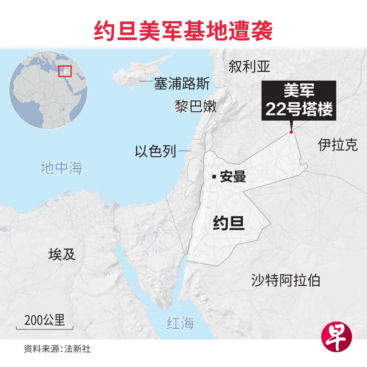 (华盛顿综合电)美军驻约旦东北部靠近叙利亚边境的一处基地,星期天(1月28日)遭无人机袭击,三名美军丧命、30多人受伤。这是以哈冲突爆发以来,首次有美军士兵在中东的敌方炮火中死亡。美国总统拜登誓言还击,区域紧张局势预料将加剧,引发以哈冲突范围扩大的担忧。