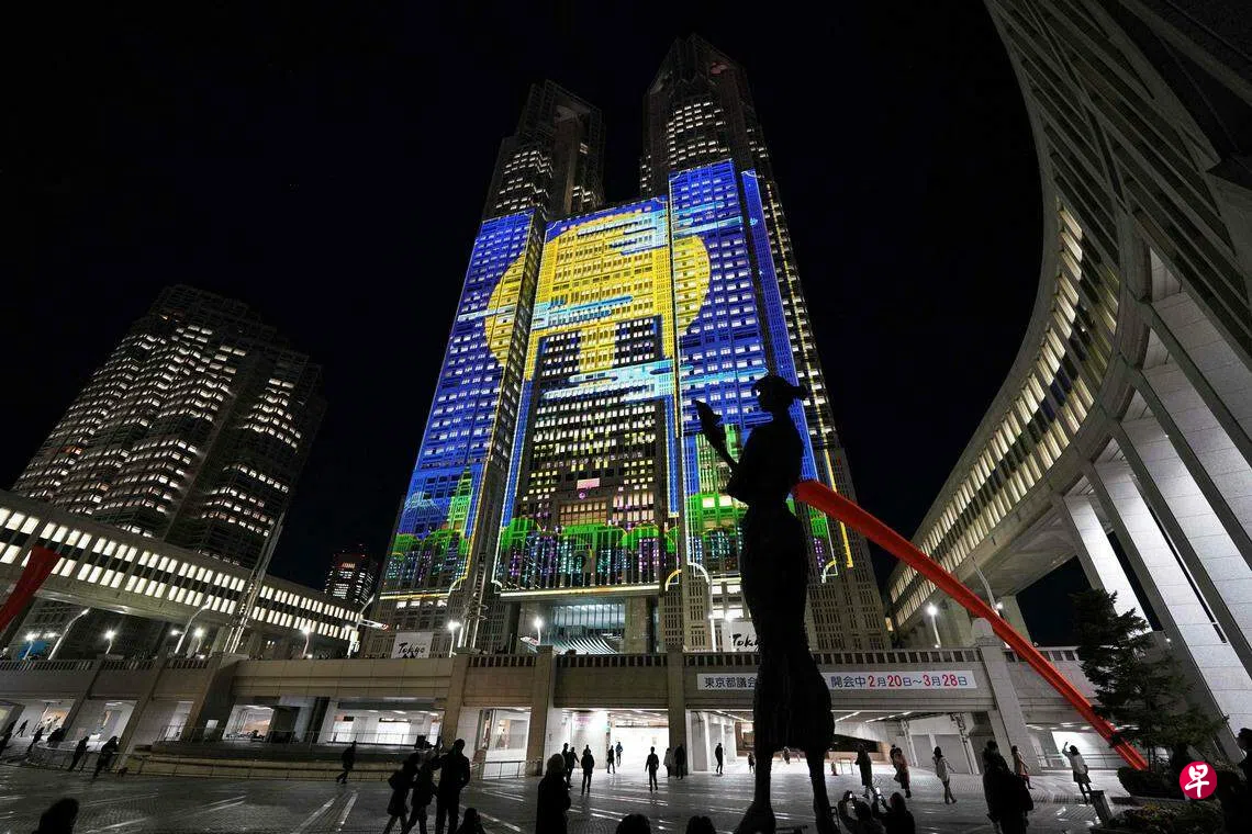 日本首都东京著名观光区新宿过去几晚比平时多了一分色彩。48层楼高的东京都政府大楼双塔每到夜幕低垂就成了巨大的银幕,结合灯光投影和音乐,展现一幕幕美轮美奂的光影,有东京晴空塔、盛开的樱花、秋天飘动的红叶等景色。