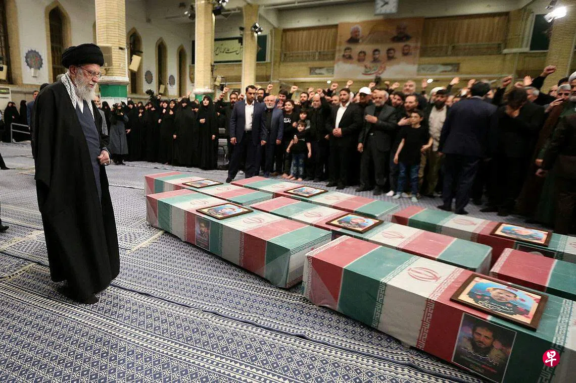 伊朗官方通讯社报道,伊朗最高领袖哈梅内伊星期四在高级军官的陪同下,在首都德黑兰参加了七名殉职伊朗军事顾问的哀悼仪式。哈梅内伊将这次袭击归咎于以色列,并誓言要以色列受到严惩。