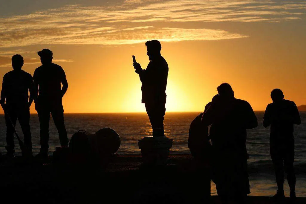 在美国首都华盛顿的国会山庄,议员和工作人员一同观看。美国总统拜登在白宫露台戴上日食眼镜望向天空,并呼吁大家要谨慎,佩戴防护眼镜观看。