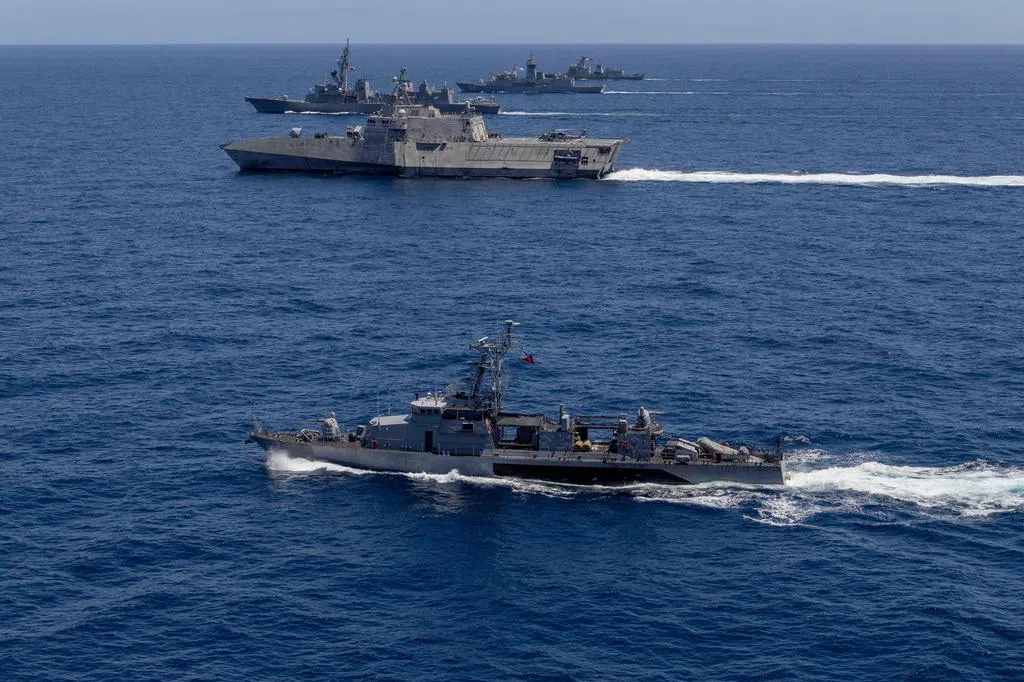 在三国峰会举行前,美日菲三国及澳大利亚星期天(4月7日)刚在菲律宾巴拉望岛西北近海的南中国海海域举行联合海上演习,这是四国首次在这个焦点海域展开正式联合军演。美国国家安全顾问沙利文说,未来还会有更多类似的联合巡航。