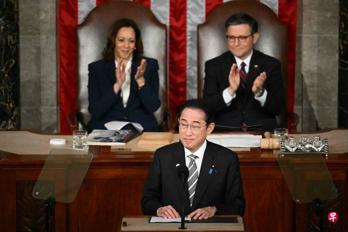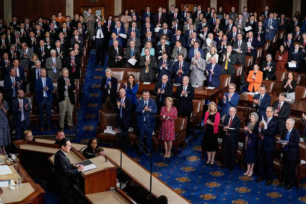 岸田是继前首相安倍晋三之后,在美国参众两院联席会议上以英语演讲的第二位日本首相。日本资深政治记者田崎史郎在东京放送的节目中说:“岸田为这次演讲用心费力。他给自己找了一位曾为美国总统撰写演讲稿的人协助,一遍又一遍地听着那个人转录的英语磁带。”