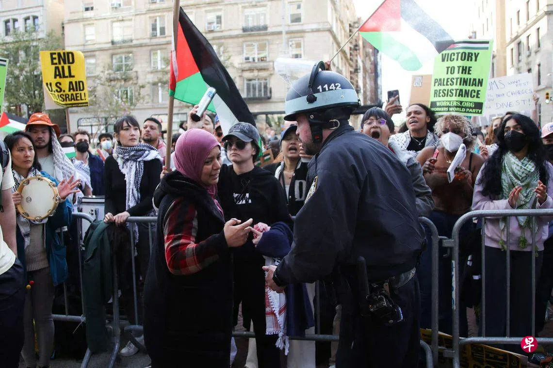 4月18日,哥大逾百名学生在校园示威,最终在大学校长的请求下被纽约市警察驱散拘留。此前一天,哥大校长沙菲克才在众议院听证会上说,“反犹主义在我们的校园里没有立足之地”。