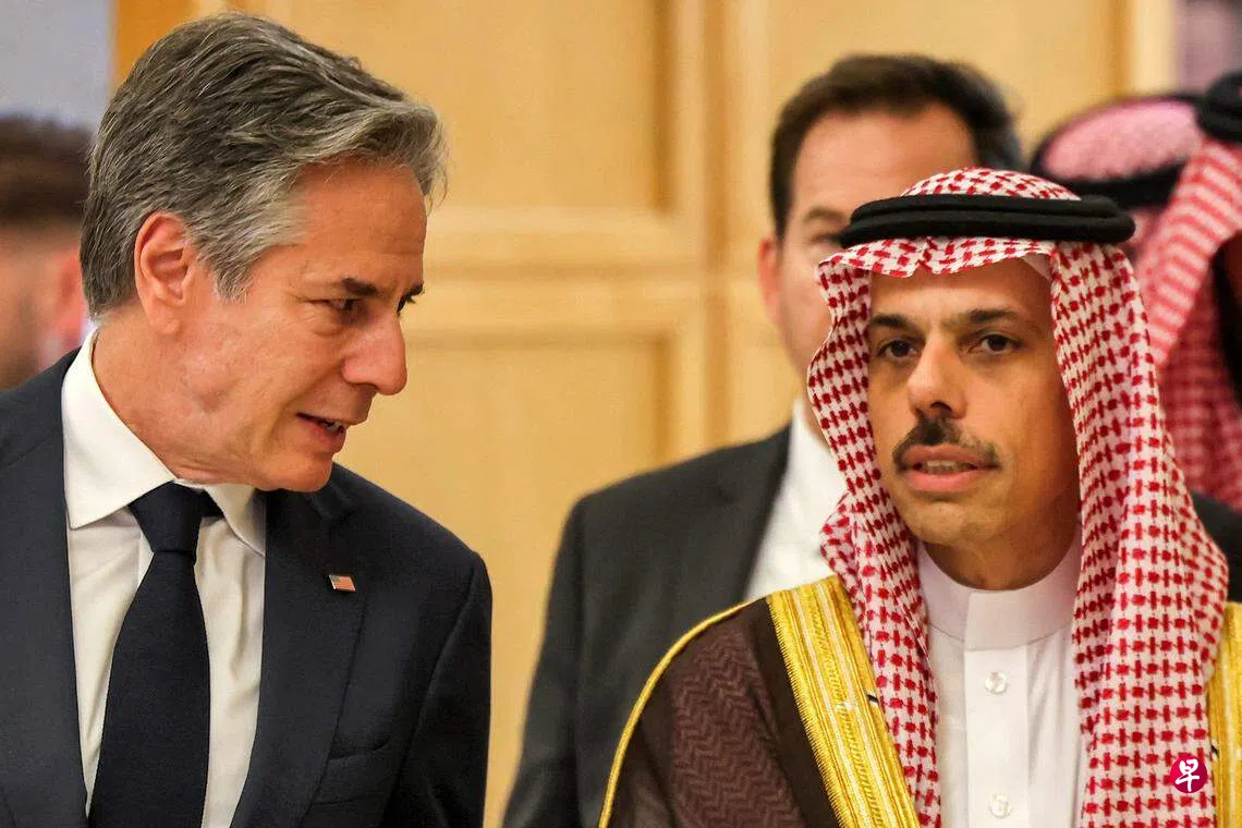 星期一晚些时候,布林肯在利雅得会见沙特王储穆罕默德,以推进沙特和以色列关系正常化。沙特外长费萨尔透露,沙特和美国已非常接近达成双边安全协议。