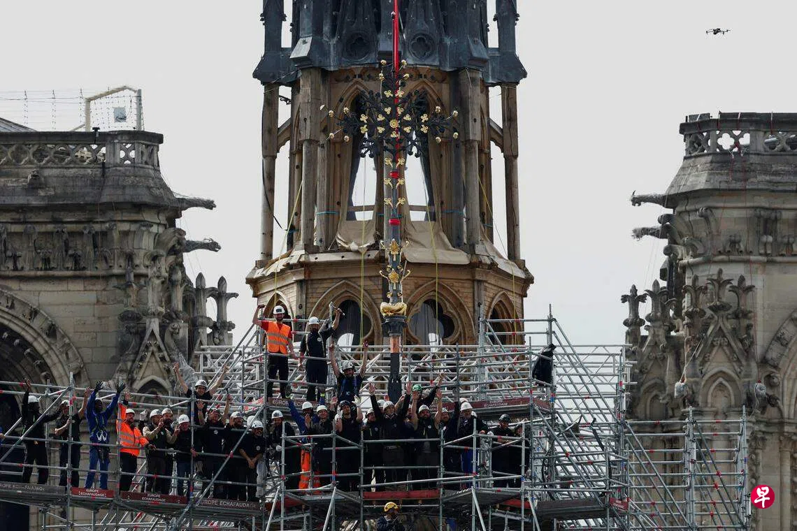 2019年遭大火严重烧毁的法国巴黎圣母院修复工作进展顺利,当年在火灾中幸存的十字架星期五(5月24日)已重新安装在大教堂顶部。