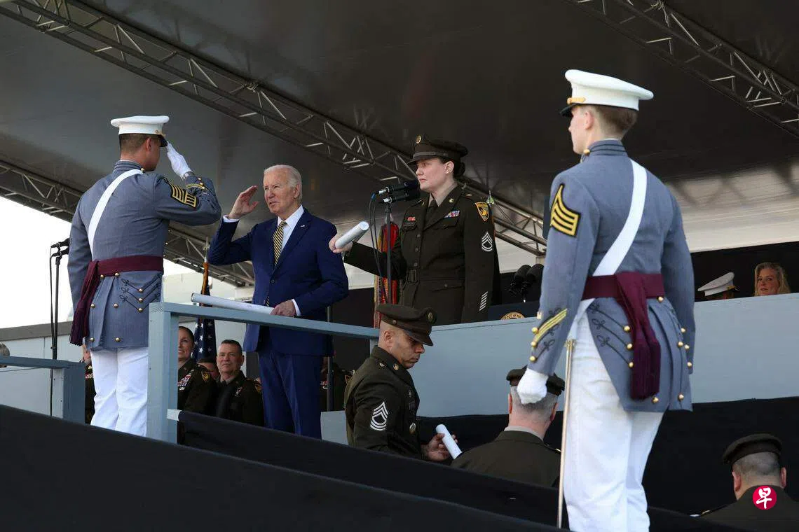 这是拜登首次以总统身份出席西点军校毕业典礼。他在讲话中强调美国在国际上的领导力,以此驳斥竞选对手特朗普对拜登政府软弱无能的批评。