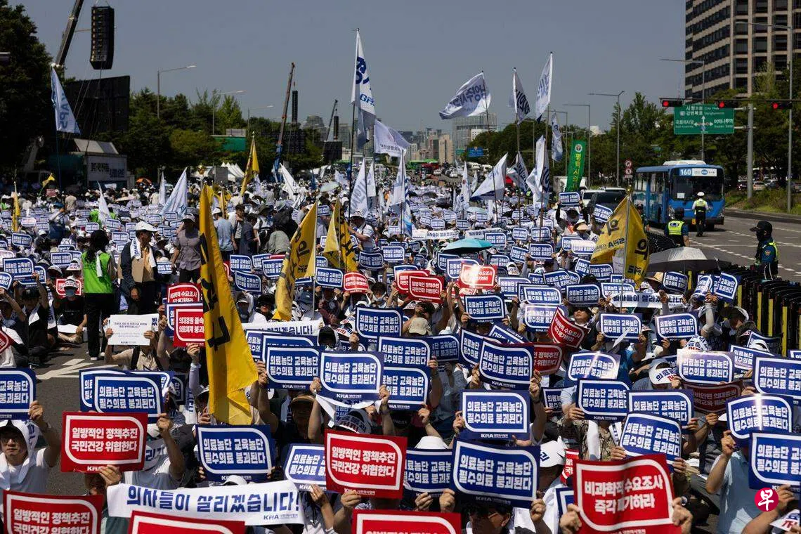 已持续四个月的韩国医生罢工潮星期二(6月18日)升级,在当地最大医生团体韩国医生协会号召下,当天约有一万名医生参与在首尔举行的罢工集会,抗议医学院扩大招生等政府医疗改革计划。