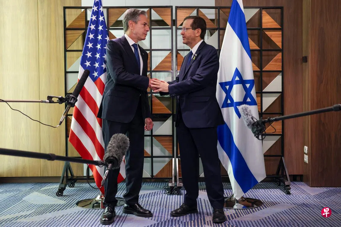 布林肯当天在特拉维夫分别与以色列总统赫尔佐格和总理内坦亚胡举行会谈。布林肯对赫尔佐格说:“这是决定性的时刻,也许是最好或最后的机会,可让人质回家、实现停火,让所有人走上持久和平与安全的道路。”