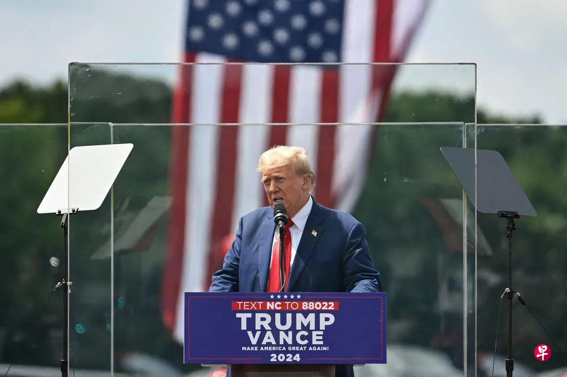 (阿什伯勒综合电)美国共和党总统候选人特朗普星期三站在防弹玻璃后,举行了自遭遇刺杀未遂以来的首场户外竞选活动。他抨击民主党对手哈里斯是历来竞逐白宫宝座的“最激进左派人士”,并声称若她胜选,美国将在一夜之间失去数以百万计的就业机会。
