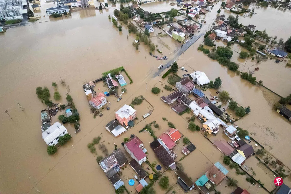 欧洲东部和中部多国近日遭暴风雨侵袭,引发洪灾,目前死亡人数已增至19人,数万人被迫撤离家园。在捷克,强降雨引发的洪灾造成上万人被迫撤离,超过11万户家庭断电。捷克东部重灾区摩拉维亚-西里西亚州因河流水位持续上升,已沦为水乡泽国,当地许多房屋几乎被洪水淹没。奥地利、匈牙利、波兰、罗马尼亚、斯洛伐克以至德国等地也受灾,多国已进入高度戒备状态。(法新社)