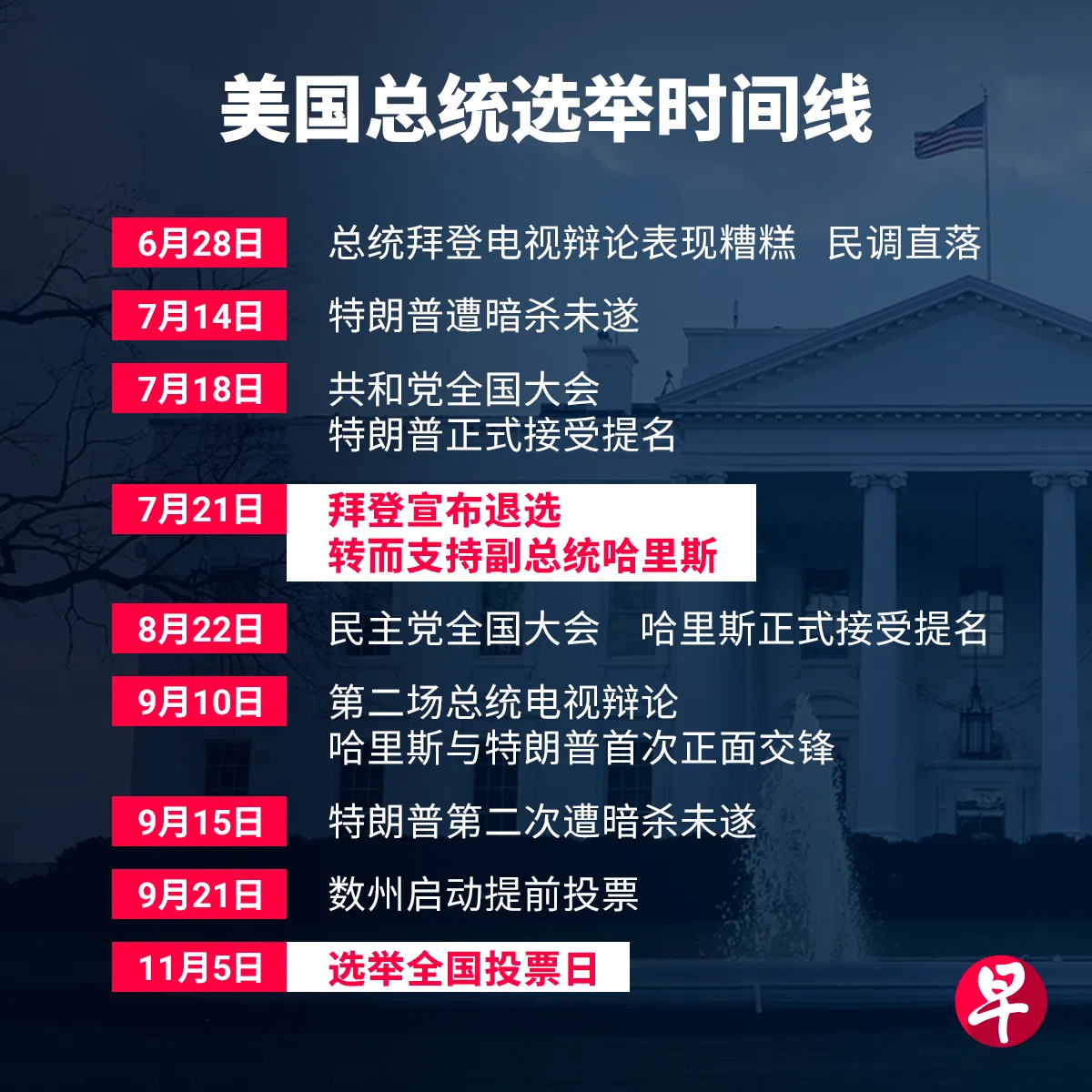 就在100天前,全世界都以为这会是四年前那两名“老白男”对决的再现。岂料接下来的选情如连续剧一般跌宕起伏,几度反转。现任总统拜登在与前总统特朗普的辩论表现大失水准后终于退出,副总统哈里斯临危受命。选情出现逆转,她的支持率保持小幅领先。