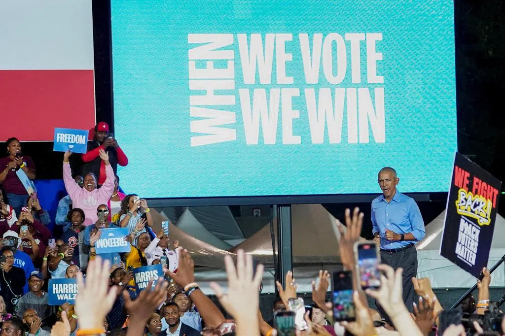 哈里斯周四在摇摆州佐治亚州拉票,前总统奥巴马现身为她背书。哈里斯促请支持者提前投票,并表明美国人有机会结束过去十年因特朗普引发的恐惧与分裂。奥巴马说,美国人不应让想当国王和独裁者的人又再执政四年。