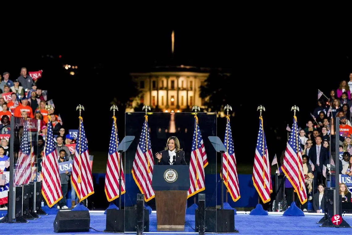 (华盛顿综合电)美国总统竞选进入倒计时,民主党候选人哈里斯发表竞选活动最后一场主要演说。她周二在共和党对手特朗普曾煽动国会大厦骚乱的总统公园告诫选民,这是一场关乎国家民主和自由的选举,特朗普上台会再次让美国陷入混乱和分裂。