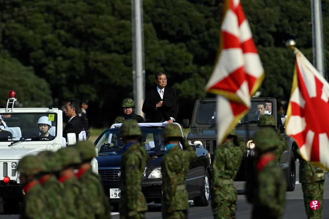 石破星期六(11月9日)为自卫队成立70周年检阅时说:“日本面临的是战后最严峻、最复杂的安全环境。我将平衡并加强日本的外交和安全工作。”