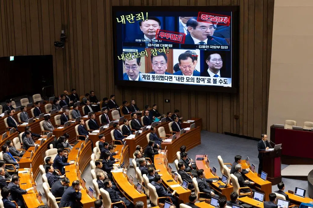 尹锡悦星期四(12月12日)上午发表谈话时,驳斥在野党的指控:“在野党正疯狂地煽动,声称宣布戒严等于叛国。真的是这样吗?目前正在破坏韩国国家事务、破坏宪法的势力是谁?戒严的宣布是为了应对在野党的威胁,是属于总统基于宪法作出的统治行为,而非叛乱。”