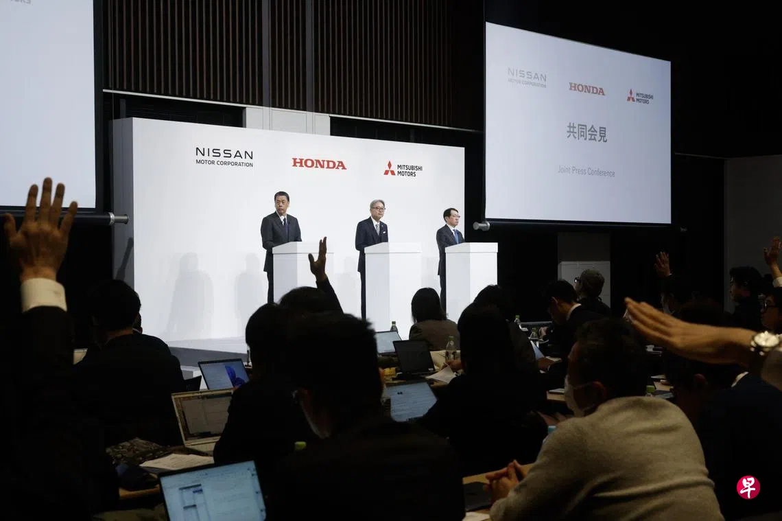 (东京综合电)经过连日来的酝酿,日本三大汽车制造商本田汽车、日产汽车和三菱汽车星期一(12月23日)在东京联合宣布,三方已签署谅解备忘录,本田与日产将正式开启合并谈判,三菱则探讨是否要参与合并。