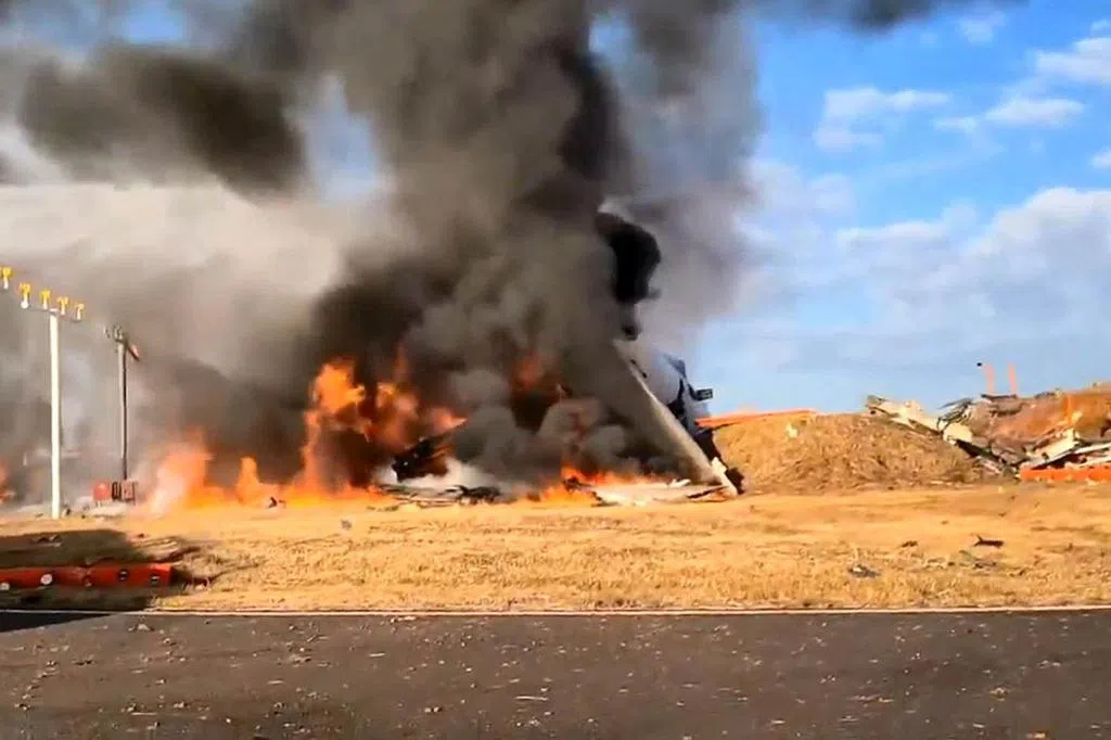 上午9时3分,客机以机腹着陆的方式迫降。然而,飞机未能有效减速,冲出跑道后,撞上机场外墙,随后剧烈爆炸,客机瞬间被浓烟和火焰吞噬,机体几乎完全烧毁,仅剩机尾部分尚存较为完整的结构。