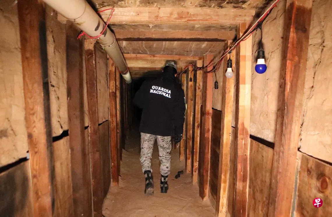 美国和墨西哥安全机构于1月10日发现这条隧道。墨西哥一侧长约300米,配有照明、通风设备,并加固以防止坍塌。