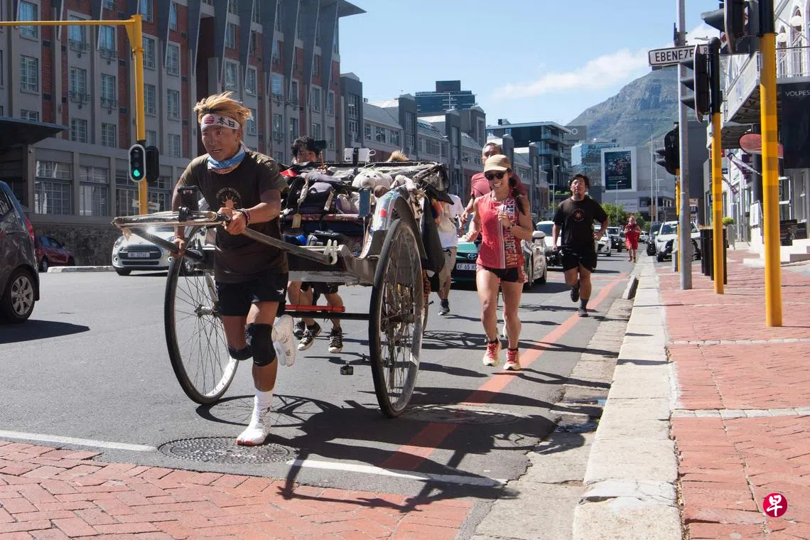 日本一名34岁男子铃木悠司去年7月徒步拉着人力车,从肯尼亚一路向南至南非,星期天(1月26日)终于抵达开普敦完成这趟6400公里的长途跋涉之旅。他感谢支持者在这趟最新的探险之旅给予鼓励,他说:“没有你们的话,我办不到,跑步是种乐趣,我已经旅行九年了,我从你们身上汲取力量,所以我也要给你们力量,这就是我的人生。”