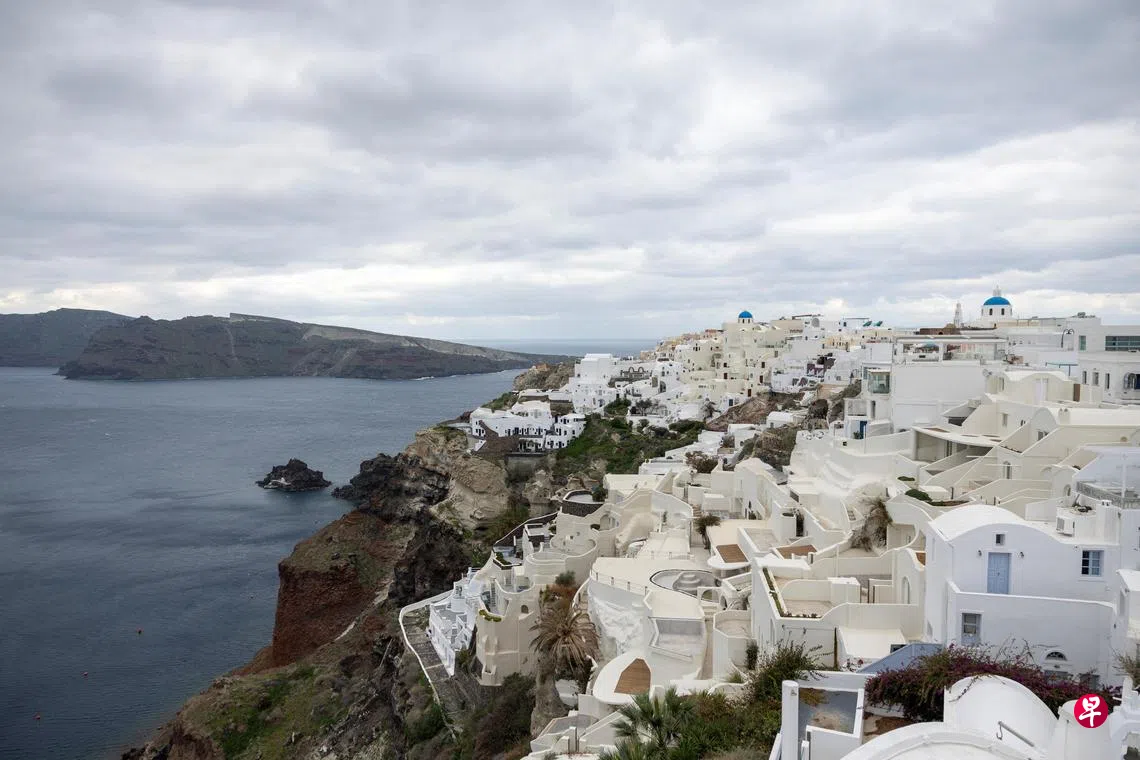 鹅卵石街道和蓝色圆顶建筑是圣托里尼岛的特色,吸引游客参观,但由于近期地震频繁,一些居民担心从5月开始的旅游旺季可能受到影响。