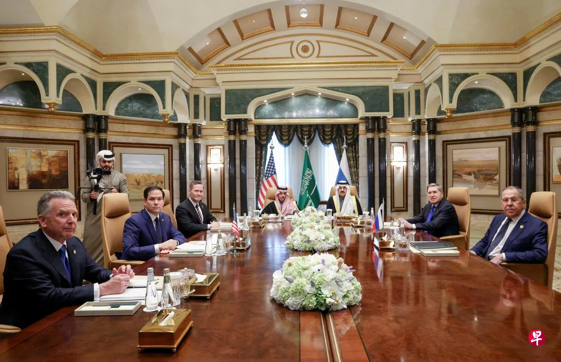 (利雅得/莫斯科综合电)美国与俄罗斯高级代表团周二在没有乌克兰或其他欧洲国家代表参与下,就结束俄乌战争与修复美俄关系等议题举行会谈。双方同意尽快任命谈判团队,就结束乌克兰战争展开磋商。