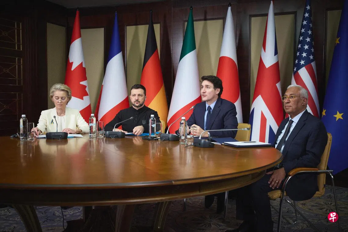 (基辅综合电)七国集团周一举行领导人电话会议讨论乌克兰局势,知情人士透露成员国无法就乌克兰抵抗俄罗斯入侵满三年的联合声明达成一致。