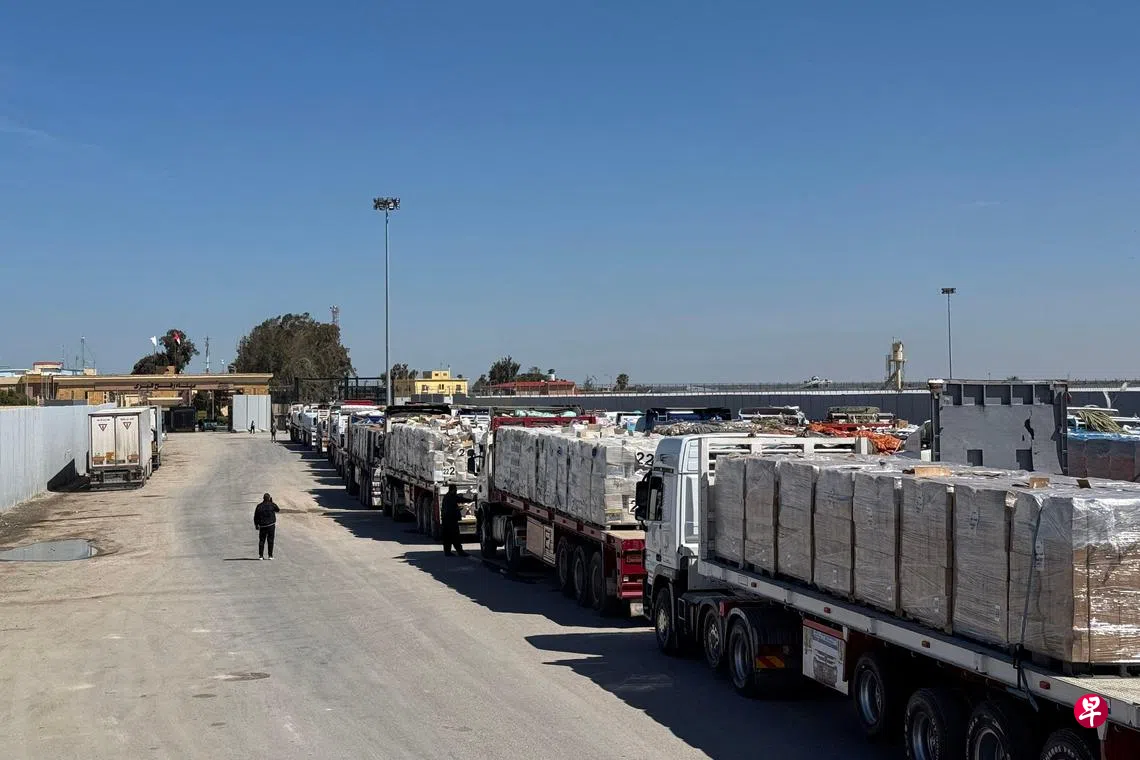 法新社报道指以色列此举导致满载物资的卡车,堵在通往加沙拉法口岸埃及一侧的公路上。