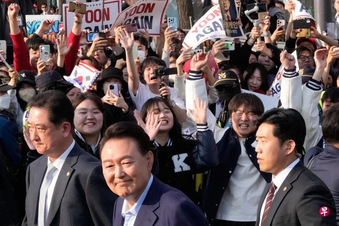 11日下午5时,尹锡悦在官邸正门现身,与现场数十名支持者一一握手、拥抱,互动约四分钟。部分支持者眼含泪光,尹锡悦则以微笑和点头回应,随后登车离开。当天他身着西装但未系领带,未发表现场讲话。